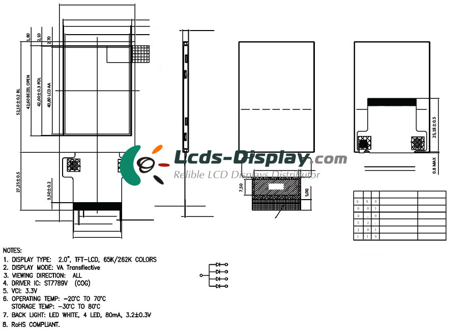 | Descrition | isang-Si TFT-LCD ,2.0 inch, 240×320 |